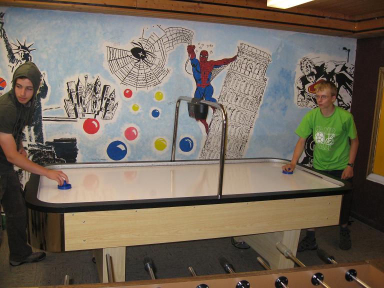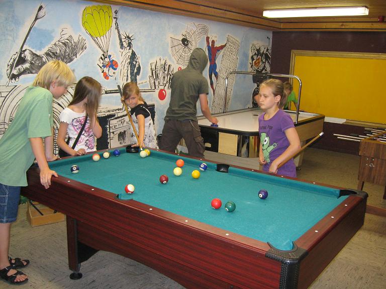| Im Spieleraum des Hauptgebäudes kannst du dich beim Airhockey, Billard oder Kicker vergnügen. Du benötigst dafür einen gültigen Spielpass und 5,- Euro Pfand.